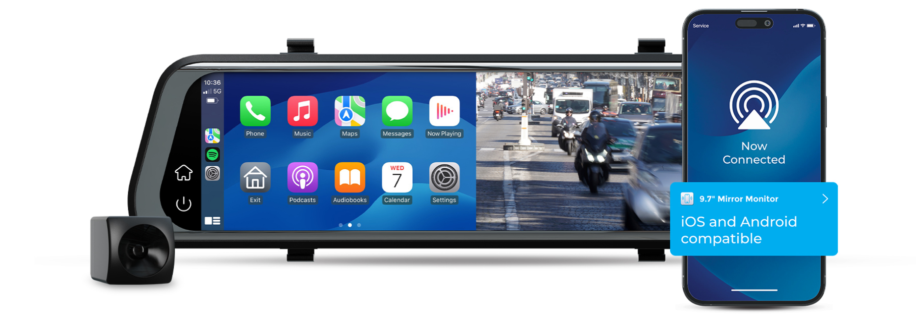 Nanocam Plus NC-962MIRDVR 9.7” Mirror Monitor with Dual-Channel Dash Cam and Smart Display