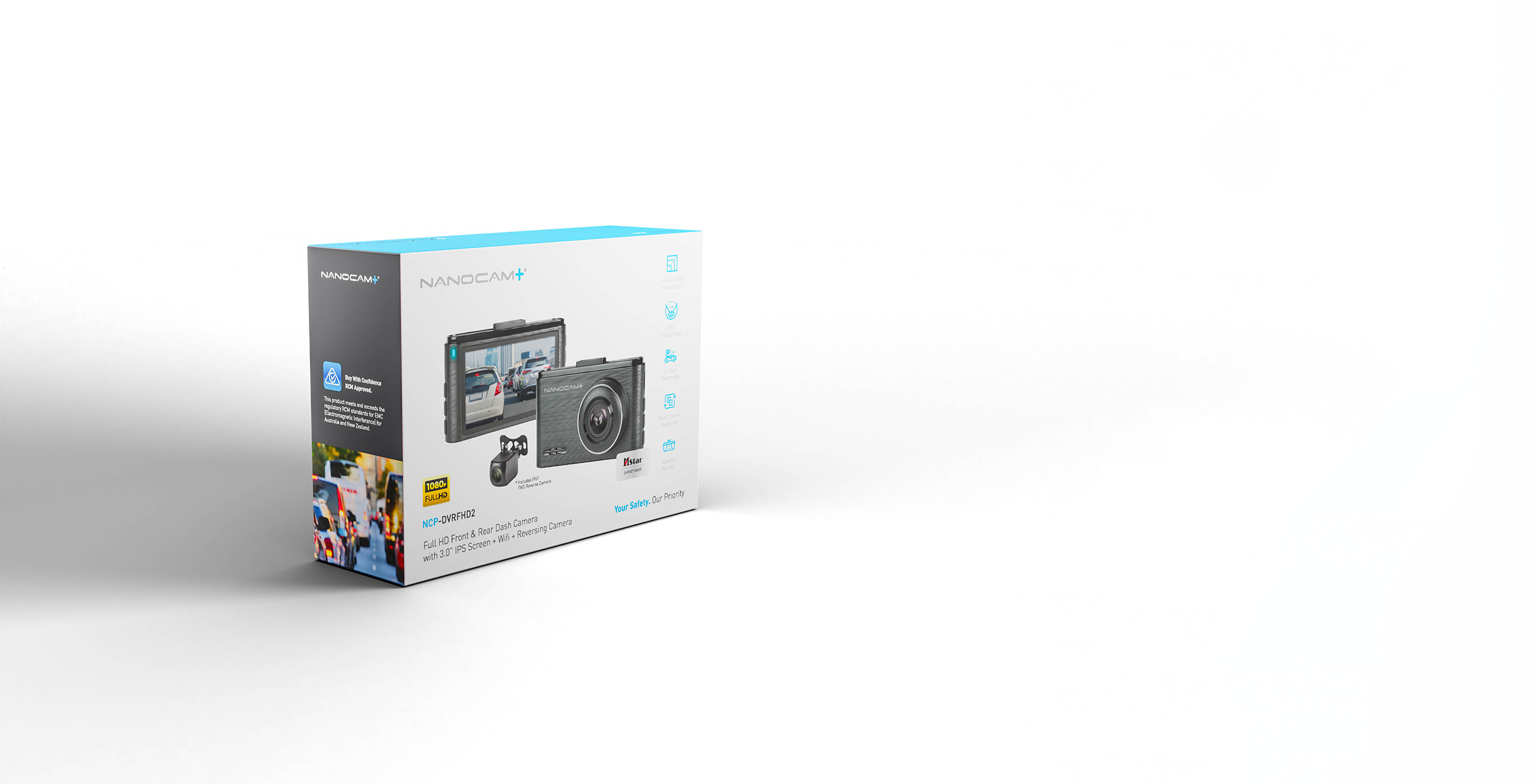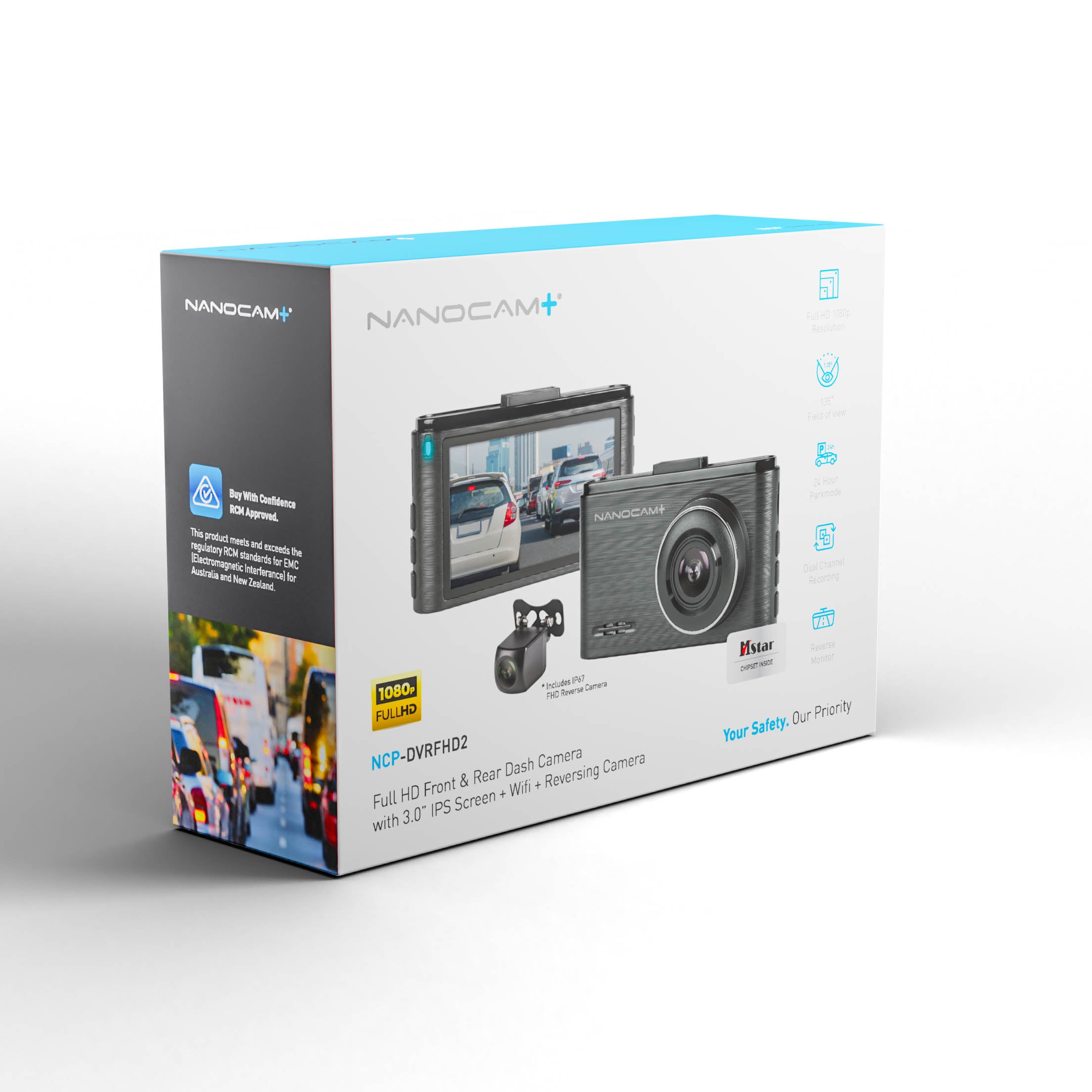Nanocam Plus NCP-DVRFHD2 Full HD Front & Rear Dash Camera with 3.0" IPS Screen, Wi-Fi and Reversing Camera