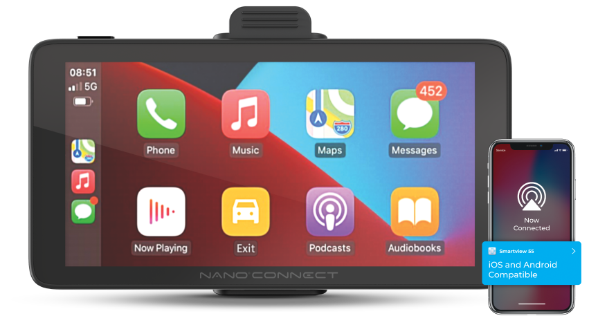 The Nanoconnect NC-550DVR 5.5” wireless monitor with single-channel is a smart monitor that wirelessly connects to your smartphone via Bluetooth and Wi-Fi for hands-free operation. The built-in front dash ensures you capture driving incidents while on the road, protecting you and your family.